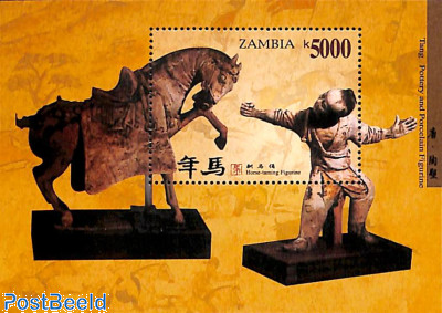Zambia’s 2002 “Horse” minisheet featured Tang Dynasty pottery and porcelain figurines.