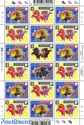 The China National Philatelic Corporation has issued a series of Year of the Horse postage stamps. Above is a sheet incorporating stamps for issue in China, Hong Kong and Macao.