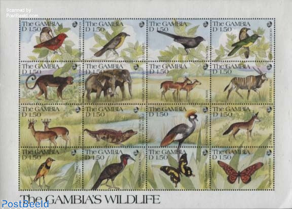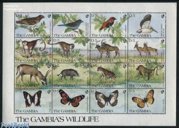 Above and below two mint condition minisheets issued by Gambia in 1991 with wildlife found in that country.